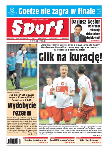 Rozmowa z Kamilem Glikiem, obrońcą Torino Calcio; Śląsk Wrocław przedłuży o kolejne dwa lata umowę z Marcinem Kowalczykiem; zarząd PZPN zatwierdził wczoraj kalendarz ekstraklasy na sezon 2013/2014.