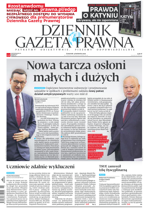 Gazetę wzbogacają praktyczne dodatki dla specjalistów, niedostępne w kioskach: Księgowość i Podatki, Rachunkowość i Audyt, Firma i Prawo, Samorząd i Administracja, Prawnik, Kadry i Płace, Ubezpieczenia i Świadczenia. NOWOŚĆ 2021 r. dodatki Biuro Rachunkowe i Księgowość Budżetowa (dostępne raz w miesiącu). Dodatkowo publikujemy wyjątkowo cenione przez Czytelników specjalne dodatki dotyczące najważniejszych zmian, nowych rozwiązań, na gorąco odpowiadamy na pytania. Piszemy o pracy zdalnej, o tarczach antykryzysowych, o nowych przepisach do walki z epidemią, o sposobach walki z zatorami płatniczymi i nowych obowiązkach pracodawców. Zapewniamy bezpieczeństwo w stosowaniu zmieniającego się prawa.