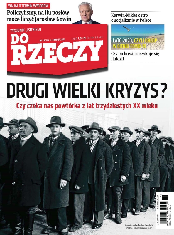Wielki kryzys dawniej i dziś; Izolacja to samobójstwo gospodarcze; Batalia o Sąd Najwyższy – koniec epoki Gersdorf; Na ile szabel może liczyć Jarosław Gowin; Znikająca kandydatka, znikająca partia; Habit kontra COVID-19; Rewolucja optyczna Jana van Eycka; Mylne tropy posmoleńskiej katastrofy; Temat odszkodowań nie zniknie.
