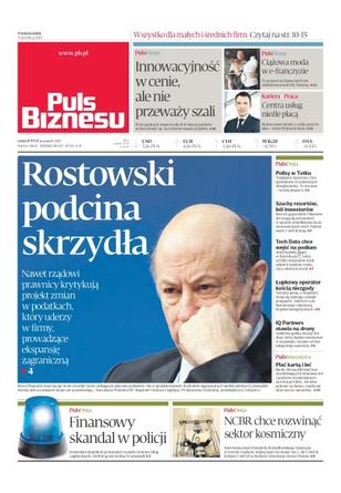 Rostowski podcina skrzydła – nawet rządowi prawnicy krytykują projekt zmian w podatkach, który uderzy w firmy, prowadzące ekspansję zagraniczną; innowacyjność w cenie, ale nie przeważy szali – w programach wsparcia dla B+R więcej punktów można dostać np. za rynkowe szanse projektu; ciążowa moda w e-franczyzie – to pomysł na biznes twórców odzieżowej marki My Tummy; polisy w Totku – Totalizator Sportowy chce sprzedawać w kolekturach ubezpieczenia; szachy resortów, ból inwestorów – resorty gospodarki i finansów nie mogą się porozumieć w sprawie przedłużenia życia ekonomicznych stref; finansowy skandal w policji – komendant doniósł do prokuratury na szefa Centrum Usług Logistycznych – zwolnić go nie można, bo przepadł.