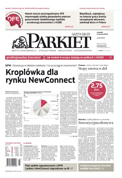 Kroplówka dla rynku NewConnect – rewolucja w składzie indeksów, czy przyciągnie inwestorów; koniec cięć jest coraz bliżej – stopy znowu w dół; nawet mocno przeregulowane OFE wspomagały polską gospodarkę poprzez generowanie dodatkowego kapitału – przekonują ekonomiści z KOBE; BlackRock, największy na świecie gracz branży zarządzania aktywami, zamknął biuro w Polsce; inwestycyjna ofensywa – spółki giełdowe na celowniku.