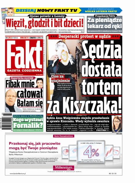 Sędzia Anna Wielgolewska utajniła przesłuchanie w sprawie Kiszczaka, wtedy wybuchła awantura; wyznania reporterki: „Fibak mnie całował, bałam się”; za pieniądze lekarz od ręki – bez zapłacenia 100 zł czekalibyśmy do jesieni; ojciec potwór z Łomży – więził, głodził i bił dzieci; jutro mecz z Mołdawią – kogo wystawi Fornalik.