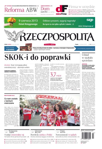 SKOK-i do poprawki – kasy wymagają pilnej restrukturyzacji – alarmuje nadzór; samorządy nie radzą sobie z przekształconymi w spółki lecznicami; rok po Euro 2012 – co nam zostało z tamtych mistrzostw; nie będzie reformy górniczych uposażeń; stracimy inwestycje sięgające 24 mld zł; sąd szybko się dowie o doręczeniu listu.