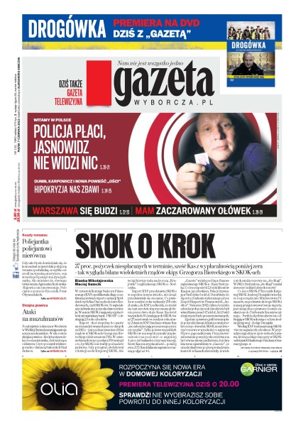 37 proc. pożyczek niespłacanych w terminie, sześć Kas z wypłacalnością poniżej zera – tak wygląda bilans wieloletnich rządów ekipy Grzegorza Biereckiego w SKOK-ach; koszty romansu – policjantka policjantowi nierówna; po zabójstwie żołnierza w Woolwich w Wielkiej Brytanii narastają nastroje antymuzułmańskie; na Opolszczyźnie euforia, premier niespodziewanie ogłosił bowiem, że rząd jest gotowy do rozbudowy elektrowni Opole; nie tylko Warszawa, Poznań i Kraków mogą nie zdążyć z wprowadzeniem nowych zasad wywozu śmieci do 1 lipca.