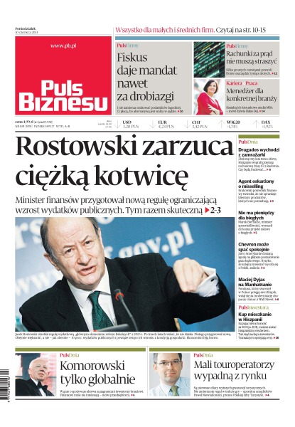 Dlaczego fiskus daje mandat nawet za drobiazgi; rachunki za prąd nie muszą straszyć; minister finansów znów przygotował nową regułę ograniczającą wzrost wydatków publicznych; złożoną trzy lata temu ofertą Hiszpanie wygrali przetarg na budowę trasy S7 z Radomia – czy będą budować; krakowski pośrednik finansowy twierdzi, że nie sprzedaje klientom produktów, których nie potrzebują; Marek Biernacki, minister