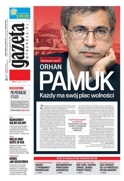 W Stambule jak w soczewce skupia się pomysł na rządy premiera Recepa Tayyipa Erdogana; w dwa tygodnie pod wnioskiem o referendum w sprawie odwołania prezydent stolicy podpisało się 70 tys. osób; 4K, czyli telewizja w ultrawysokiej rozdzielczości, ma zachwycić widzów i uratować przed klęską japońskich producentów elektroniki; nie tylko telefony milionów Amerykanów, ale również e-maile, czaty czy rozmowy na Skypie – głównie obcokrajowców, ale nie wyłącznie ich – są kontrolowane przez rząd USA; dlaczego nikt już nie pisze na drzwiach od wychodka; posłuchajmy Jacka Kuronia, który apelował, by Polacy i Ukraińcy o przeszłości pamiętali wspólnie; nasi siatkarze bronią w Lidze Światowej trofeum, po raz pierwszy dla tak wielu uchodzą za poważnych faworytów; rok po fatalnym występie na Euro Polska zremisowała z Mołdawią, 134. drużyną rankingu FIFA.