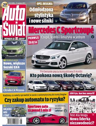 Mercedes C Sportcoupe – coupe, kombi i limuzyna w jednym; pierwsza jazda – nowe, większe Suzuki SX4; Opel Insignia – odmłodzona stylistyka i nowe silniki; Citroen C4 Picasso; porównanie pięciu kompaktowych kombi – kto pokona nową Skodę Octavię; czy zakup automatu to ryzyko – radzimy, co należy sprawdzić w aucie z automatyczną skrzynią biegów; test DFSK V27 – jak jeździ auto z Chin; test Kia Venga – 100 tysięcy kilometrów bez awarii – nowa liderka niezawodności; Volvo V40 – szwedzki kompakt z 5-cylindrowym turbobenzyniakiem; jazda po wodzie – co się może zepsuć w samochodzie; uprawnienia kierowców jednośladów – konkretne sytuacje drogowe; Audi A8 kontra Jaguar XJ – szybkie starcie luksusowych limuzyn; temat tygodnia, kronika – zalane auta wkrótce trafią do sprzedaży.