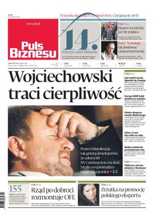 14. edycja Gazel Biznesu – do 30 września czekamy na zgłoszenia najdynamiczniejszych firm; Europa traci, potencjał ma Azja – podpowiada Euler Hermes; prawo i biurokracja tak gniotą deweloperów, że założyciel JW Construction ma dość – myśli o wyprowadzce biznesu za granicę; jeśli wyższa instancja podtrzyma rozstrzygnięcie w sprawie działki po starych koszarach, powstanie precedens groźny dla rynku – alarmuje Griffin; zarząd ABM Solid doniósł na syndyka; Polska diaspora skusiła MyHeritage; Unipetrol deklaruje inwestycje warte 3 mld zł, a czeskie władze – walkę z szarą strefą; w radzie IDM nie ma już negocjatorów układu z byłymi władzami GPW; Chińczycy straszą winiarzy z Bordeaux; rząd po dobroci rozmontuje OFE.