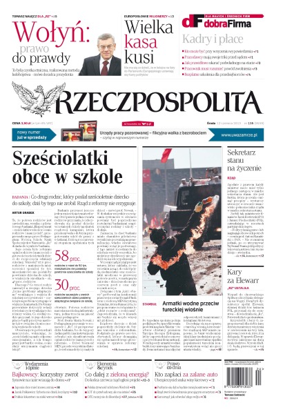Co drugi rodzic, który posłał sześcioletnie dziecko do szkoły, dziś by tego nie zrobił; będą osobne obchody rocznicy rzezi, państwowe i obywatelskie – mówi doradca prezydenta; nie będzie śledztwa w sprawie afery tzw. fikcyjnych dzielnicowych w Zielonej Górze; Japonia chce tak zmienić konstytucję, by w założeniu pacyfistyczne siły samoobrony stały się regularną armią; w Rosji prezydent zamierza poszerzyć swą polityczną bazę – tworzy coś, co przypomina słynny Front Jedności Narodu z czasów PRL; rekord Polski kobiet w skoku wzwyż poprawiony po 29 latach – nowy – 199 cm, należy do Kamili Stepaniuk; eksportujemy coraz więcej poza Unię Europejską – nasze sery i twarogi zdobywają szturmem rynek rosyjski, a wieprzowina Japonię i Chiny.