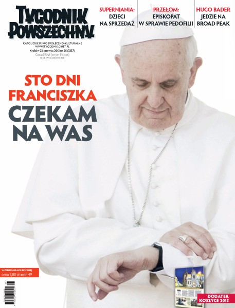 Sto dni Franciszka – najważniejszy u Franciszka jest ruch, i to ruch na zewnątrz, ku drugiemu, z własnej przestrzeni ku peryferiom; publicyści, teologowie i duchowni komentują papieskie słowa i gesty; czy na czas realizacji „Superniani” lub „Surowych rodziców” zawieszono prawa dzieci; Jan Rokita – która z jego twarzy jest prawdziwa; nasi żołnierze mają wyjść z Afganistanu do końca 2014 roku – dla wielu z nich wojna nigdy się nie skończy; mieszkańcy rodzinnej miejscowości Stanisława Dziwisza opowiadają, jak wiele zapowiadało jego kapłańską drogę.