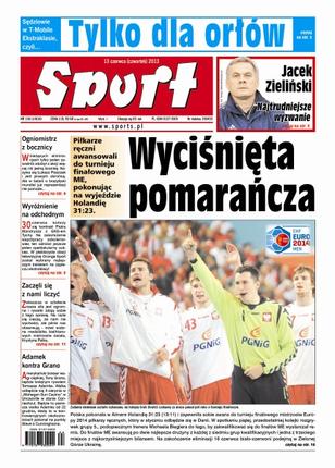 Piłkarze ręczni awansowali do turnieju finałowego ME, pokonując na wyjeździe Holandię 31:23; wicemistrz Polski chce kupić środkowego obrońcę, bo niepewna jest przyszłość każdego z trzech obecnych w klubie stoperów; Piotr Mandrysz w plebiscycie stacji telewizyjnej Orange Sport został wybrany najlepszym trenerem na zapleczu ekstraklasy; o minimum na mistrzostwa świata powalczą w Oslo tyczkarka Anna Rogowska, dyskobol Robert Urbanek i „przeszkodowiec” Łukasz Parszczyński – Piotr Małachowski już nie musi; w NBA Danny Green w trzecim meczu usunął w cień nawet samego LeBrona Jamesa; Krzysztof Włodarczyk 21 czerwca w Moskwie, w pojedynku z Rachimem Czakijewem, po raz piąty będzie bronił mistrzostwa świata WBC w junior ciężkiej.