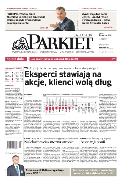 Akcje hurtowników leków biją rekordy cenowe na giełdzie; Harper deklaruje, że nie zwolni tempa; Ronson wprowadza do oferty nowe lokale; Niedzica trafi do Energi dopiero po debiucie; City Interactive: w 2014 roku dwie duże premiery; PKO BP zaspokoił swój apetyt na akwizycje; w ciągu ostatnich dwóch miesięcy do funduszy obligacji wpłacono prawie 3 mld zł netto – nie byłoby w tym nic dziwnego, gdyby nie to, że od kilku tygodni narażają one inwestorów na straty; spektakularna hossa w Japonii dobiegła końca; NCIndex30 – nowy wskaźnik z NewConnect.