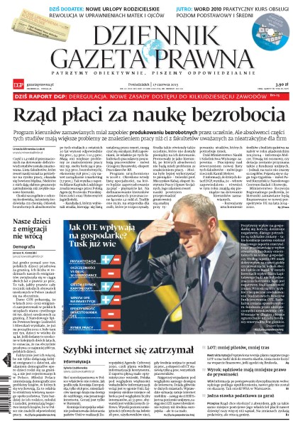 Dziennik Gazeta Prawna – codziennie obiektywne i rzetelne informacje z kraju i ze świata. Piszemy o tym, co dziś ważne i odpowiadamy na Wasze pytania – szczególnie te związane z obecnymi wyzwaniami tj. pandemia, praca zdalna. Na bieżąco wyjaśniamy zmieniające się przepisy. Wspieramy się wyjaśnieniami ministerstw i urzędów. Pomagamy unikać błędów i ostrzegamy, jakie są kary. Ponadto w każdy piątek specjalne magazynowe wydanie Dziennika Gazety Prawnej w całości z tekstami społeczno-ekonomicznymi.