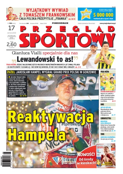 Jarosław Hampel wygrał żużlowe Grand Prix Polski w Gorzowie; Artur Szpilka mimo że wygrał, nie jest zadowolony ze swojej walki z Brianem Minto podczas gali w Bydgoszczy; kulomiot Tomasz Majewski jest w coraz lepszej formie.
