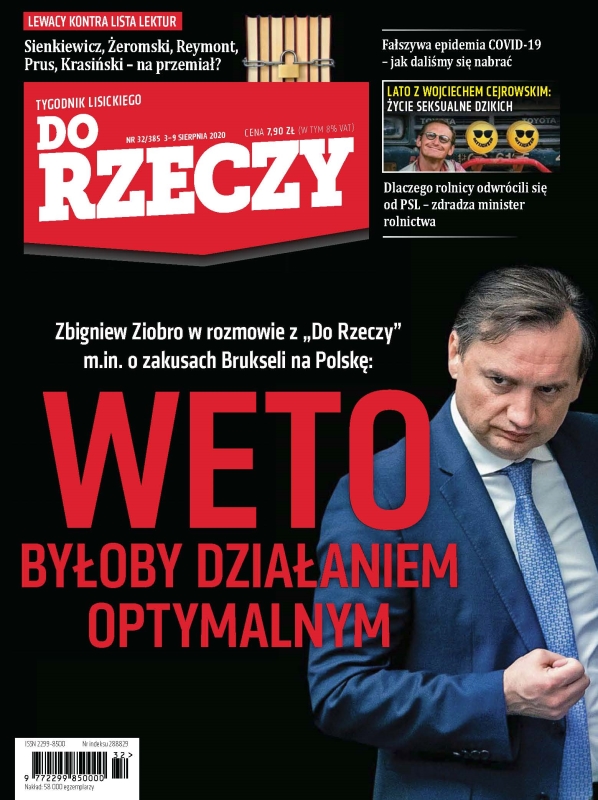 Ze Zbigniewem Ziobro, ministrem sprawiedliwości i liderem Solidarnej Polski rozmawia Jacek Przybylski; Jeśli politycy Zjednoczonej Prawicy mieli nadzieję na chwilę oddechu i świętowanie zwycięstwa Andrzeja Dudy, to chyba się ona nie spełniła. Z Jarosławem Kaczyńskim nie sposób się nudzić; Zachodzenie od prawej; Wiara, która zawiodła; Nietykalni „regionaliści”; Papieska biel i kardynalski szkarłat.