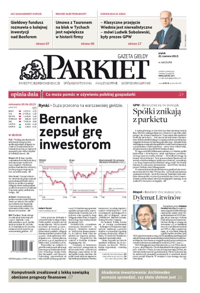 Największy w Polsce newsroom gospodarczy zbiera, analizuje i zgłębia dla Państwa najważniejsze informacje ze świata finansów. Codzienne wydanie „Parkietu”, sześć dni w tygodniu, to kilkadziesiąt artykułów o emitentach, instytucjach finansowych, gospodarce. To również opinie, felietony i wywiady z najważniejszymi ludźmi krajowej i globalnej finansjery.