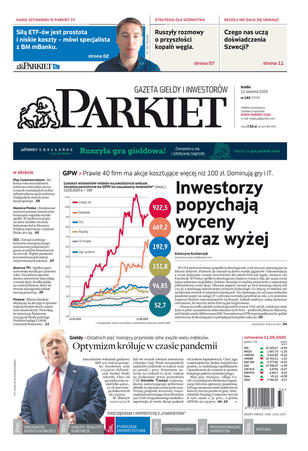 Największy w Polsce newsroom gospodarczy zbiera, analizuje i zgłębia dla Państwa najważniejsze informacje ze świata finansów. Codzienne wydanie „Parkietu”, sześć dni w tygodniu, to kilkadziesiąt artykułów o emitentach, instytucjach finansowych, gospodarce. To również opinie, felietony i wywiady z najważniejszymi ludźmi krajowej i globalnej finansjery.