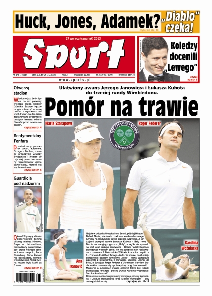 Ułatwiony awans Jerzego Janowicza i Łukasza Kubota do trzeciej rundy Wimbledonu; 14 lipca po raz pierwszy większa grupa kibiców Górnika Zabrze będzie mogła zobaczyć murawę boiska z wysokości nowych trybun; doświadczony pomocnik GKS-u Katowice, Grzegorz Fonfara, odrzucił propozycję Zawiszy Bydgoszcz; około 25 tysięcy kibiców obserwowało trening piłkarzy mistrza Niemiec, Bayernu Monachium, prowadzony po raz pierwszy przez nowego szkoleniowca zespołu, Pepa Guardiolę.