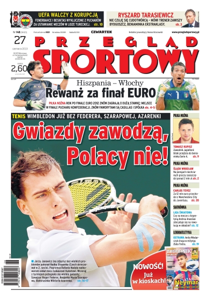 Wimbledon – Jerzy Janowicz tak sponiewierał Czecha Radka Štěpanka, że ten po godzinie stracił ochotę do walki, dalej gra również Łukasz Kubot; Hiszpania – Włochy – rewanż za finał Euro; Śląsk Wrocław na pensjach niechcianych graczy zaoszczędzi ponad 2 mln zł; Carlo Tevez – za 12 mln euro przechodzi z Manchesteru City do Juventusu; czy na mecze z Argentyną Andrea Anastasi zdecyduje się na rewolucję w składzie.
