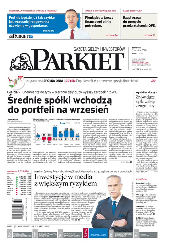 Największy w Polsce newsroom gospodarczy zbiera, analizuje i zgłębia dla Państwa najważniejsze informacje ze świata finansów. Codzienne wydanie „Parkietu”, sześć dni w tygodniu, to kilkadziesiąt artykułów o emitentach, instytucjach finansowych, gospodarce. To również opinie, felietony i wywiady z najważniejszymi ludźmi krajowej i globalnej finansjery.