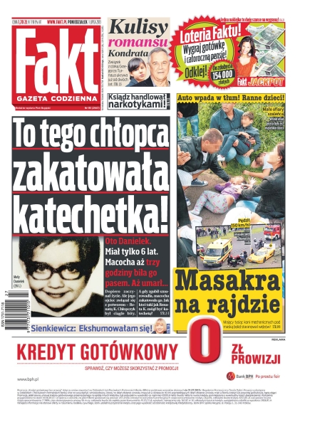 To tego chłopca zakatowała katechetka – Danielek miał tylko 6 lat, macocha aż trzy godziny biła go pasem, aż umarł; kulisy romansu Marka Kondrata – związek z córką Grzegorza Turnaua ukrywa już od dwóch lat; ksiądz handlował narkotykami – duchowny tłumaczy się, że spełniał wolę znajomych; masakra na rajdzie – auto wpada w tłum, ranne dzieci – mający tysiąc koni mechanicznych pod maską bolid staranował widzów; Zamachowski chce się żenić za granicą, czego aktor się wstydzi – marzy, by być mężem Moniki Richardson, ale się krepuje – ludzie mają mu za złe, że zostawił zonę z dziećmi; „Ekshumowałam się” – Krystyna Sienkiewicz opowiada o kulisach powrotu na ekran; Polacy rządzą w Londynie – Łukasz Kubot i Jerzy Janowicz wygrali już po trzy mecze w wielkoszlemowym turnieju w stolicy Wielkiej Brytanii.