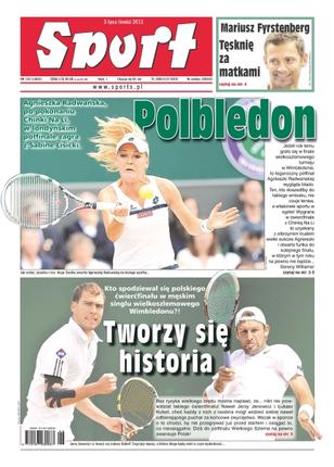 Polbledon – Agnieszka Radwańska po pokonaniu Chinki Na Li, w londyńskim półfinale zagra z Sabine Lisicki; kto spodziewał się polskiego ćwierćfinału w męskim singlu wielkoszlemowego Wimbledonu; „Tęsknie za matkami” – Mariusz Fyrstenberg; ambasador „Poldi” – Łukasz Podolski odwiedził wczoraj stadion na Roosevelta – Akademia Górnika, która na obiekcie Walki Zabrze docelowo ma mieć do dyspozycji cztery boiska, będzie miała prawo do używania jego wizerunku; Guardiola dał przykład – Wojciech Stawowy wyznaje interesującą filozofię, bardzo podoba mu się gra Barcelony i w ogóle cała piłka hiszpańska – Cracovia ma grać podobnie, czyli ofensywnie i dużą ilością podań; FIFA robi cyrk – na rok przed mundialem Brazylia przeszła pierwszy poważny sprawdzian – piłkarsko zdała go celująco, organizacyjnie dostała termin poprawkowy.