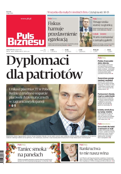 Unikasz płacenia CIT w Polsce – będzie ci trudno o wsparcie placówek dyplomatycznych w zagranicznej ekspansji; dzięki przerwanemu przedawnieniu skarbówka zyskuje więcej czasu na kontrolę podatnika; w porównaniu z pierwowzorem znad Sekwany, klubem Vente-Privee, Złote Wyprzedaże dopiero raczkują; zdaniem NBP, polski rynek pracy stał się ostatnio bardziej elastyczny; Polska słusznie nie wdrożyła dyrektywy antypodróbkowej – uważają producenci leków; łódzka strefa liczy na tysiąc etatów; poniżej 1 zł wyceniane są akcje aż 20 proc. spółek notowanych na głównym rynku; Lech Witecki, szef drogowej dyrekcji, znalazł się w krzyżowym ogniu; chińsko-europejskie negocjacje w sprawie eksportu paneli fotowoltaicznych do UE trochę przypominają zapasy, a trochę balet.