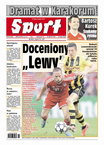 Kolejny dramat polskich himalaistów – we wtorek z Karakorum docierały sprzeczne informacje – najpierw, że z grani spadł Marcin Kaczkan i nie ma z nim kontaktu, kilkanaście godzin później, cudownie ocalony Kaczkan przekazał, że nie żyje Artur Hajzer; Robert Lewandowski został nominowany przez UEFA do nagrody dla najlepszego piłkarza poprzedniego sezonu w Europie; zespół z Roosevelta na zgrupowaniu w Słowenii wciąż czeka na pierwszego gola; polskie kluby często zapominają, że najlepszymi akcjami marketingowymi są te, w których biorą udział piłkarze; Atletico Madryt, jeden z najbardziej zasłużonych klubów, rywal Vive Targów w Lidze Mistrzów i zespół Mariusza Jurkiewicza, ogłosił upadłość; Marcel Kittel okazał się lepszy od swego rodaka Andre Greipela w bezpośredniej rywalizacji na finiszu dziesiątego etapu.