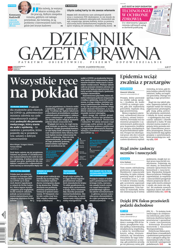 Gazetę wzbogacają praktyczne dodatki dla specjalistów, niedostępne w kioskach: Księgowość i Podatki, Rachunkowość i Audyt, Firma i Prawo, Samorząd i Administracja, Prawnik, Kadry i Płace, Ubezpieczenia i Świadczenia. NOWOŚĆ 2021 r. dodatki Biuro Rachunkowe i Księgowość Budżetowa (dostępne raz w miesiącu). Dodatkowo publikujemy wyjątkowo cenione przez Czytelników specjalne dodatki dotyczące najważniejszych zmian, nowych rozwiązań, na gorąco odpowiadamy na pytania. Piszemy o pracy zdalnej, o tarczach antykryzysowych, o nowych przepisach do walki z epidemią, o sposobach walki z zatorami płatniczymi i nowych obowiązkach pracodawców. Zapewniamy bezpieczeństwo w stosowaniu zmieniającego się prawa.