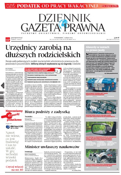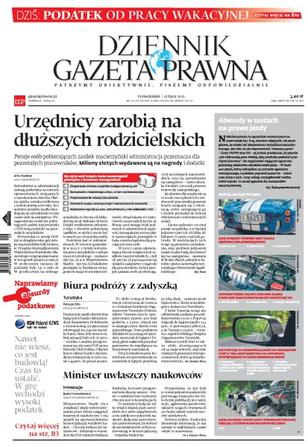 Dziennik Gazeta Prawna – codziennie obiektywne i rzetelne informacje z kraju i ze świata. Piszemy o tym, co dziś ważne i odpowiadamy na Wasze pytania – szczególnie te związane z obecnymi wyzwaniami tj. pandemia, praca zdalna. Na bieżąco wyjaśniamy zmieniające się przepisy. Wspieramy się wyjaśnieniami ministerstw i urzędów. Pomagamy unikać błędów i ostrzegamy, jakie są kary. Ponadto w każdy piątek specjalne magazynowe wydanie Dziennika Gazety Prawnej w całości z tekstami społeczno-ekonomicznymi.
