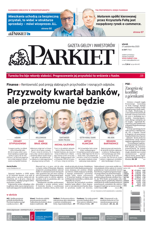 Największy w Polsce newsroom gospodarczy zbiera, analizuje i zgłębia dla Państwa najważniejsze informacje ze świata finansów. Codzienne wydanie „Parkietu”, sześć dni w tygodniu, to kilkadziesiąt artykułów o emitentach, instytucjach finansowych, gospodarce. To również opinie, felietony i wywiady z najważniejszymi ludźmi krajowej i globalnej finansjery.