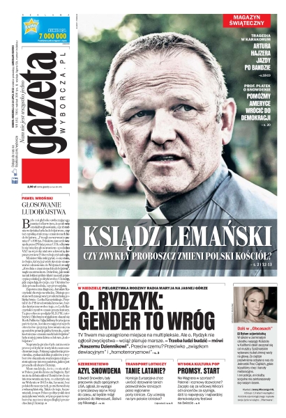 TV Trwam ma upragnione miejsce na multipleksie, ale o. Rydzyk nie ogłosił zwycięstwa; czy zwykły proboszcz zmieni polski Kościół; Komisja Europejska chce ukrócić proceder ukrytego dotowania tanich przewoźników lotniczych przez regionalne porty lotnicze; efekt papieża Franciszka; jazdy Artura Hajzera; 25 lat temu zmarł tragicznie Jan Strzelecki; Sycylia ociekająca seksem; rząd w Madrycie chce, by do 2016 r. kluby pierwszej i drugiej ligi zmniejszyły dług o 1 mld euro; Polacy spadli z Ligi Światowej.