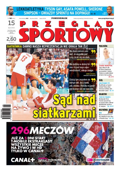 Polscy siatkarze wygrali w grupowych rozgrywkach Ligi Światowej tylko cztery mecze, a sześć przegrali, w tym dwa ostatnie z Bułgarią w Warnie; zakup Łukasza Skorupskiego to dla AS Roma inwestycja na przyszłość – szanse Polaka na debiut w Serie A nie są duże; w półfinale wyścigów żużlowych w Częstochowie Polacy zdeklasowali rywali.