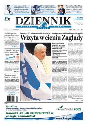 Podczas wizyty w Izraelu Benedykt XVI modlił się za ofiary Holokaustu i o pokój na Bliskim Wschodzie; sztab specjalistów przygotowuje scenariusz telewizyjnej debaty Donalda Tuska ze związkowcami; Rosja nie chce dopuścić do wyboru Włodzimierza Cimoszewicza na sekretarza Rady Europy; według analityków już latem benzyna może kosztować nawet 4,5 zł za litr; Jarosław Gowin, autor ustawy bioetycznej chce całkowitego zakazu macierzyństwa zastępczego.