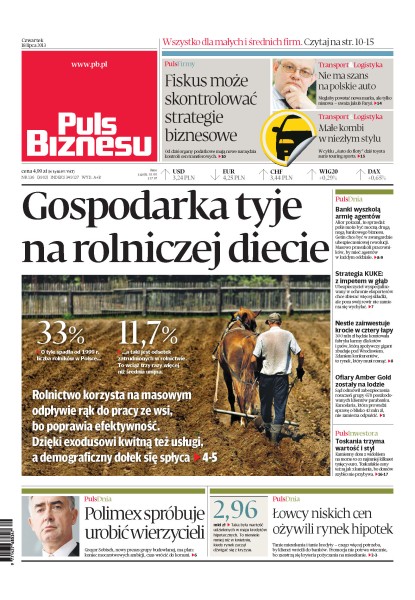 Rolnictwo korzysta na masowym odpływie rąk do pracy ze wsi, bo poprawia efektywność; 300 mln zł będzie kosztowała fabryka karmy dla kotów i psów, którą Nestle zbuduje pod Wrocławiem; sąd odmówił zabezpieczenia roszczeń grupy 678 poszkodowanych klientów Amber Gold.