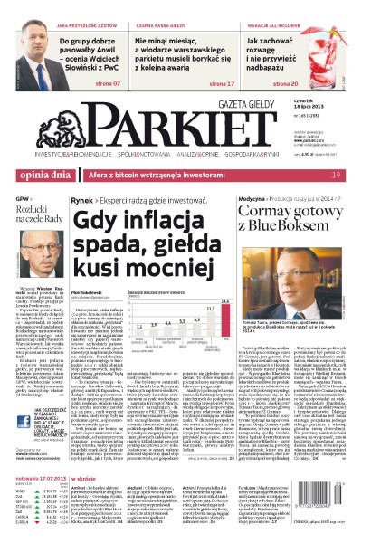 Historycznie niska inflacja skłania do szukania przystani dla oszczędności – gdzie najlepiej inwestować; Wiesław Rozłucki został powołany na stanowisko prezesa Rady Giełdy; Tomasz Tuora, prezes Cormaya, spodziewa się, że produkcja BlueBoksa może ruszyć już w II połowie 2014 r.
