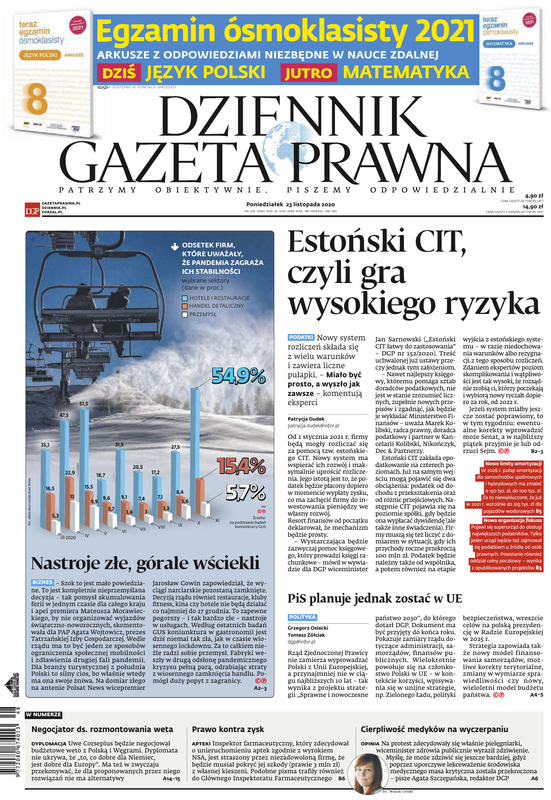 Gazetę wzbogacają praktyczne dodatki dla specjalistów, niedostępne w kioskach: Księgowość i Podatki, Rachunkowość i Audyt, Firma i Prawo, Samorząd i Administracja, Prawnik, Kadry i Płace, Ubezpieczenia i Świadczenia. NOWOŚĆ 2021 r. dodatki Biuro Rachunkowe i Księgowość Budżetowa (dostępne raz w miesiącu). Dodatkowo publikujemy wyjątkowo cenione przez Czytelników specjalne dodatki dotyczące najważniejszych zmian, nowych rozwiązań, na gorąco odpowiadamy na pytania. Piszemy o pracy zdalnej, o tarczach antykryzysowych, o nowych przepisach do walki z epidemią, o sposobach walki z zatorami płatniczymi i nowych obowiązkach pracodawców. Zapewniamy bezpieczeństwo w stosowaniu zmieniającego się prawa.