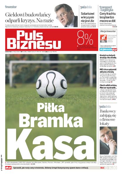 UEFA podjęła decyzję – mecze Euro 2012 zostaną rozegrane w Warszawie, Gdańsku, Poznaniu i Wrocławiu; krajowi producenci autobusów największe zyski osiągają z eksportu; rozpoczyna się kolejna bankowa wojna cenowa, tym razem o korporacyjne lokaty; Intel, amerykański producent mikroprocesorów, musi zapłacić 1,06 mld euro kary za nielegalne rabaty; największe polskie miasta inwestują w infrastrukturę tramwajową.