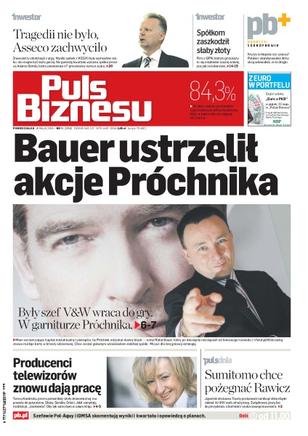 Sumitomo przenosi produkcję z Rawicza do Rumunii – pracę straci 900 osób, tymczasem producenci telewizorów rozpoczynają rekrutację, Skarbiec Gotówkowy stracił jednego dnia 4% na wycenie z powodu inwestycji w obligacje Reportera, Rafał Bauer chce postawić Próchnik na nogi, ArcelorMittal Warszawa stawia na inwestycje, Bioagra wchodzi na rynek bioetanolu, United International Trust zainwestował w polskie stocznie prawie 450 mln zł, WIG20 czeka na impuls z Zachodu. Dodatek: Skandynawia.