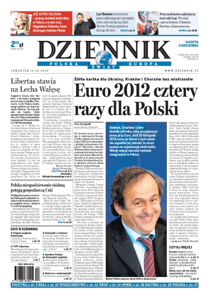 Władze UEFA ogłosiły wczoraj, w których czterech polskich miastach rozgrywane będą mecze Euro 2012; Declan Ganley chce, aby Lech Wałęsa został prezydentem Unii Europejskiej; rząd Donalda Tuska ustala szczegóły poniedziałkowej debaty premiera ze stoczniowcami; z dochodem narodowym wartym 350 mld euro Polska jest siódmą potęgą gospodarczą w Europie; papież Benedykt XVI opowiada się za niepodległością Autonomii Palestyńskiej i krytykuje ingerencję Izraela w Gazie.