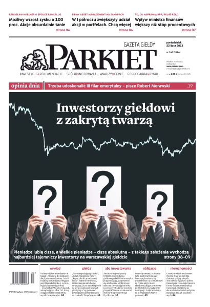 Radosław Koelner o spółce Rawlplug – możliwy wzrost zysku o 100 proc. akcje absurdalnie tanie; trzeba udoskonalić III filar emerytalny – pisze Robert Morawski; inwestorzy giełdowi z zakrytą twarzą – pieniądze lubią ciszę, a wielkie pieniądze – ciszę absolutną – z takiego założenia wychodzą najbardziej tajemniczy inwestorzy na warszawskiej giełdzie; WIG-informatyka – jak powinno się analizować spółki z tego sektora; grunty z wiejskim domem można mieć już za kilkadziesiąt tysięcy złotych – nie zawsze będzie to dobra inwestycja.