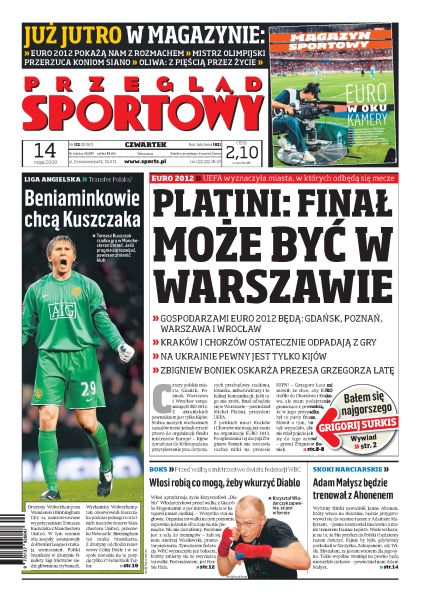 UEFA ogłosiła listę polskich miasta, w których rozegrane zostaną mecze Euro 2012; wywiad z Grigorijem Surkisem, szefem Ukraińskiego Związku Piłkarskiego; Tomasz Adamek podpisał kontrakt na walkę z Mattem Godfreyem; rozmowa z Adamem Małyszem; Tomasz Kuszczak już niedługo może odejść z Manchesteru United; ostatnie przygotowania Krzysztofa Włodarczyka do walki o mistrzostwo świata federacji WBC w kategorii junior ciężkiej.