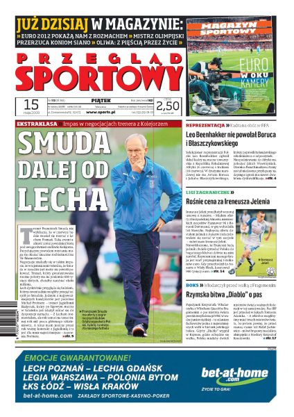 Na organizacji Euro 2012 UEFA zarobi dziesięć razy więcej niż Polska; najprawdopodobniej już w czerwcu Franciszek Smuda przestanie być selekcjonerem Lecha Poznań; rozmowa z Ireneuszem Jeleniem, napastnikiem Auxerre; ostatnie przygotowania Krzysztofa Włodarczyka do walki o tytuł mistrza świata; wywiad z Mariuszem Fyrstenbergiem i Marcinem Matkowskim.