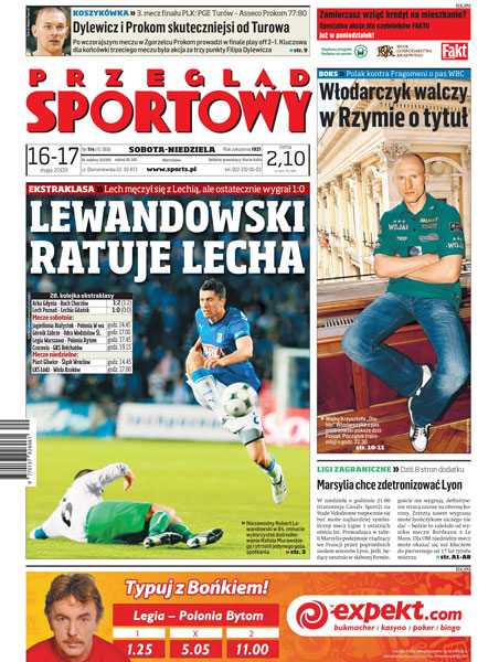 Aż 66 dni – tyle Lech Poznań czekał na zwycięstwo w piłkarskiej ekstraklasie; Piotr Ćwielong w meczu z ŁKS dostanie szansę gry od pierwszej minuty; Legia Warszawa: Jan Urban nie może skorzystać z napastnika z Zimbabwe; mistrzowie Polski z Sopotu odzyskali atut własnego parkietu; Krzysztof Włodarczyk zmierzy się w Rzymie z Włochem Giacobbe Fragomenim o tytuł mistrza świata federacji WBC; wywiad z Caroline Wozniacki.