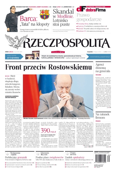 Front przeciw Rostowskiemu – błędy w budżecie, eksplozja długu, sztuczki księgowe, fiskalizm; skandal w Modlinie – lotnisko stoi puste; agenci donoszą na generała; perfekcyjny grzesznik – 15 lat od śmierci Zbigniewa Herberta; poufne płace związkowców – tylko PKP płaci działaczom 25 mln zł; zasiłek opiekuńczy – gminy z ostrożności odmawiają pomocy.