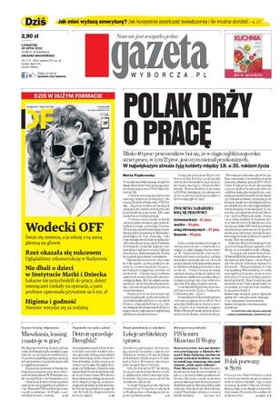 Jak mieć wyższą emeryturę – jak korzystnie przeliczać świadczenia i ile można dorobić; blisko 40 proc. pracowników boi się, że w ciągu najbliższego roku straci pracę – w największym stresie żyją kobiety między 18. a 35. rokiem życia; rzeź okazała się sukcesem – oglądaliśmy rekonstrukcję w Radymnie; kryzys trochę odpuszcza – mieszkania, leasingi nastroje w górę; trzęsienie na rynku sztuki – Detroit sprzedaje Breughla.
