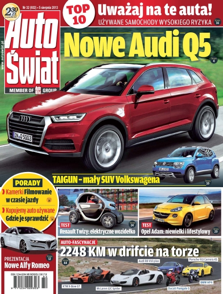 Auto Świat to najpopularniejszy w Polsce magazyn dla pasjonatów motoryzacji. Czytelnicy znajdą w tygodniku prezentacje najnowszych samochodów, opisy jazd testowych, a także raporty o sprawach ważnych dla kierowców np. zmianie przepisów ruchu drogowego. Każdy numer tygodnika zawiera testy samochodów, porównania wybranych modeli, porady dotyczące eksploatacji auta i odpowiedzi ekspertów na pytania czytelników.