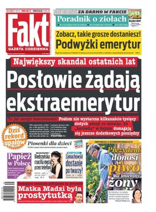 Posłowie żądają ekstraemerytur – największy skandal ostatnich lat – posłom nie wystarcza kilkanaście tysięcy złotych pensji co miesiąc, za „harówkę” w Sejmie domagają się jeszcze dodatkowych pieniędzy; Biedrzyńska rzuciła męża przez telefon – aktorka odeszła do młodszego; czy Zamachowski dostanie po twarzy – aktor spotka się z mężem Moniki Richardson; prezydent donosi piwo na imieniny żony – bez kelnerów i na swojsko, prezydent Bronisław Komorowski na działce wyprawił imieniny swojej żonie Annie; matka Madzi była prostytutką – szokujące zeznania policjanta w procesie – Katarzyna Waśniewska w ten sposób dorabiała, zanim urodziła córkę; papież w Polsce – Ojciec Święty zwołał do Krakowa młodych katolików, sam też przyjedzie.
