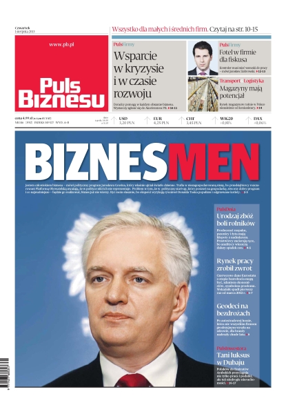 Biznesmen – Jestem człowiekiem biznesu, mówi polityczny program Jarosława Gowina, który właśnie ujrzał światło dzienne – w realizację tego programu nie wierzą przedsiębiorcy; wsparcie w kryzysie i w czasie rozwoju – doradcy pomogą w każdym obszarze biznesu – wystarczy zgłosić się do akceleratora PB; magazyny mają potencjał – rynek magazynów rośnie w Polsce niezależnie od koniunktury; urodzaj zbóż boli rolników – producenci rzepaku, pszenicy i żyta mają kłopoty z nadmiarem – przetwórcy zacierają ręce, bo analitycy wieszczą dalszy spadek cen; geodeci na bezdrożach – po autostradowej hossie, która nie wszystkim firmom geodezyjnym wyszła na zdrowie, dla branży nadeszły chude lata; tani luksus w Dubaju – Polaków do Emiratów Arabskich przyciągają nie tylko praca i podatki, ale też niedrogie nieruchomości.