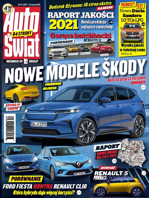 Škoda iV - mniejszy elektryk z Czech; Dacia Bigster - większa niż Duster; Renault 5 - nowy mały elektryk; Maserati MC20 - jazda prototypem; Raport: inwestycje drogowe w 2021 roku; Ford Fiesta kontra Renault Clio - porównanie małych aut z napędem hybrydowym; Audi A3 Limousine w wersji 35 TFSI; Dacia Sandero z fabryczną instalacją LPG; Android Auto - instrukcja połączenia; Jaguar F-Type kontra Aston Martin Vantag.